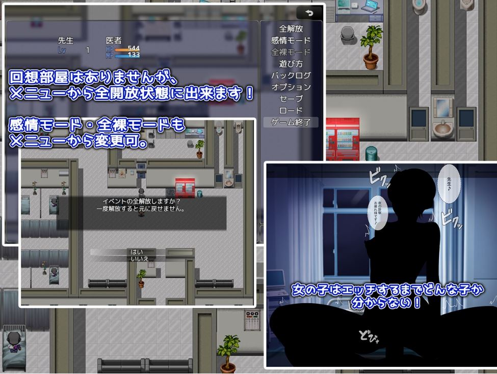 所有病人始终完全裸体,但护士可以选择穿着护士制服或完全裸体。